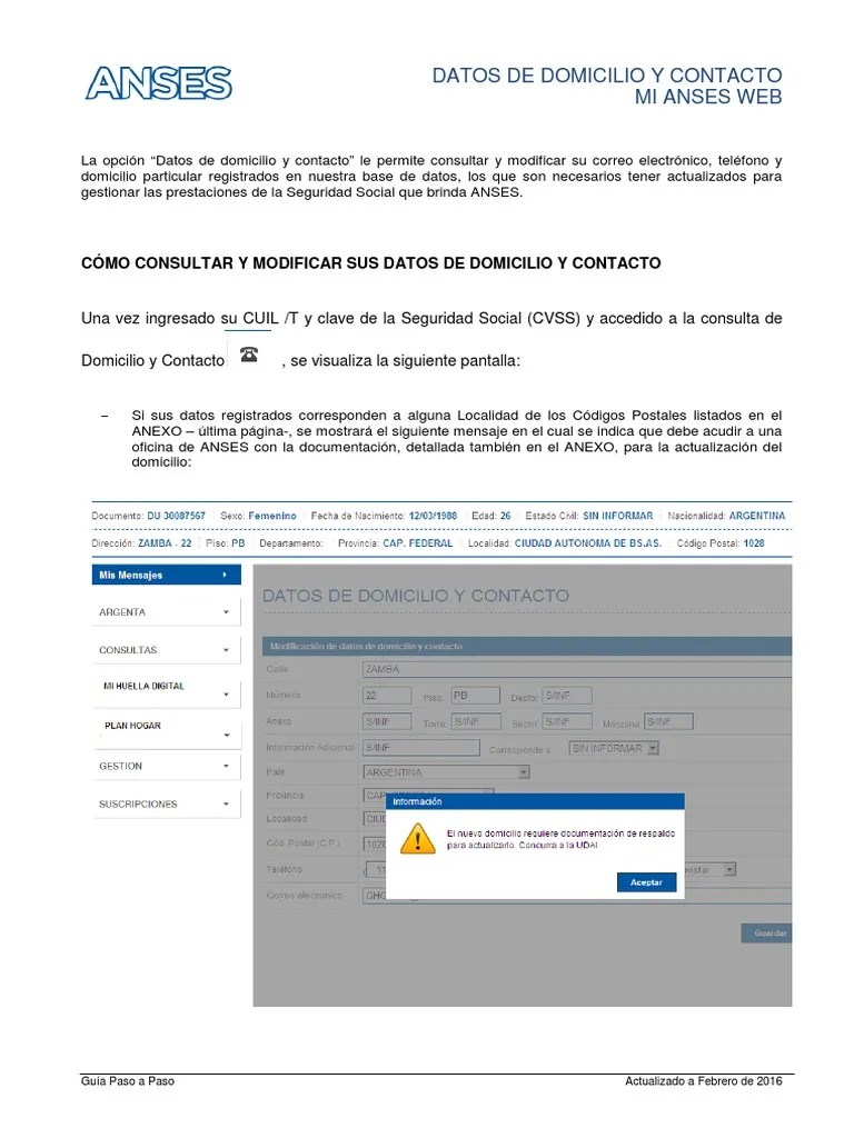 Pulsar en "información personal" y "domicilio y datos de contacto". Una pregunta q tiene q hacer mi madre para ser a la apoderada de mi sobrina ? Si solo tenés que modificar tu domicilio y datos de contacto, podés hacerlo a través de mi anses o llamando al 130. · 2) en la página vas a encontrar, del lado derecho, la ventana actualizá tus datos, . La auh es una asignación mensual por cada hijo menor de 18 años.